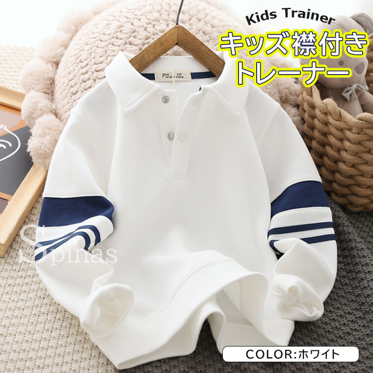 袖のラインがスポーティーなデザインのトレーナー♪ トレーナー ポロシャツ 襟付き 長袖 トップス キッズ 子供服 男の子 袖のライン 110-160cm ポロ襟 スポーティー 全4色 ホワイト イエロー ライトブルー ダークブルー 110cm 120cm 130cm 140cm 150cm 160cm 小学生 小学 制服 通販 学生服 長袖 シャツ スクールシャツ 通学用 小学生 学校用 小学生用 学校用 入学 買い替え 小学校