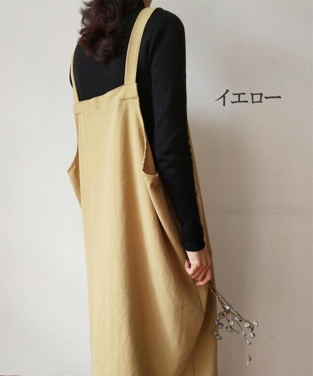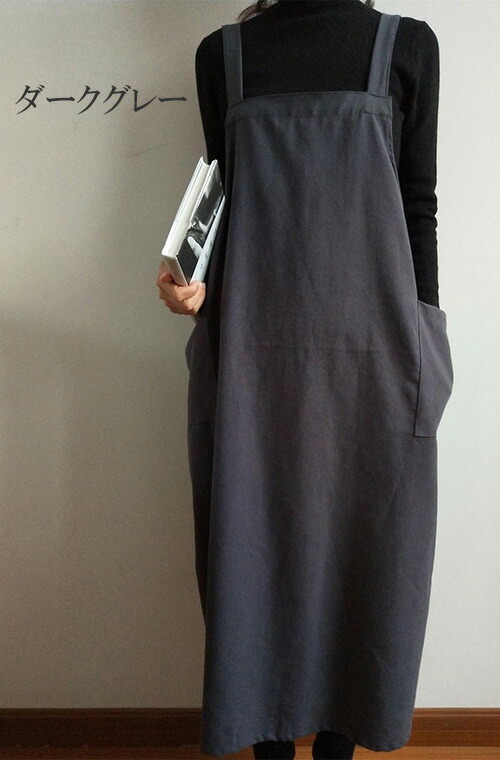 レディース アースカラー かぶり ゆったり ロング 無地 保育士 美容師 花屋