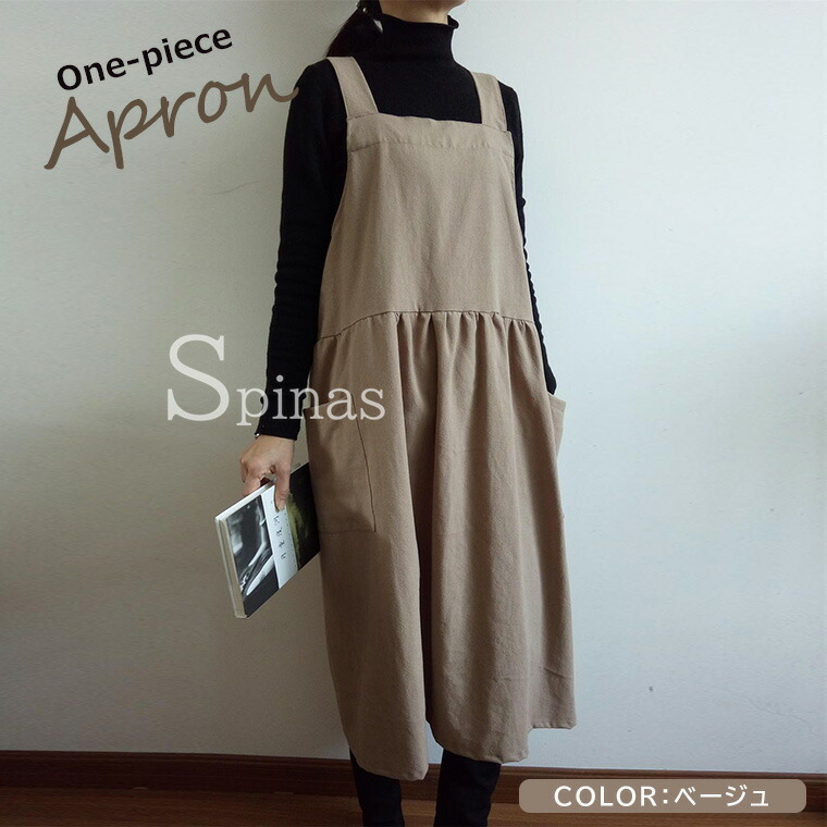 エプロン ワンピース 106cm丈 ナ キッチン用品 食器 調理器具 新登場! オフホワイト ベージュ