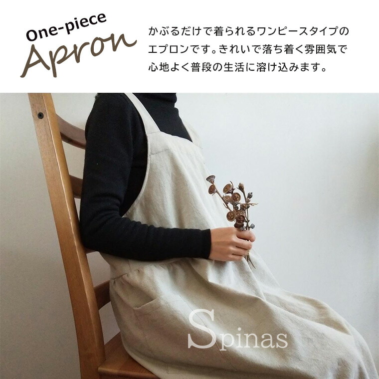 かぶるだけで着られるワンピースタイプのエプロンです。