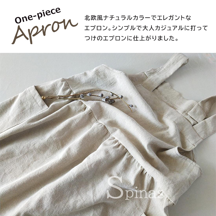 北欧風ナチュラルカラーがオシャレなレディースエプロンのご紹介です♪ レディース ワンピースエプロン ナチュラル 北欧風 シンプル ギャザー切り替え