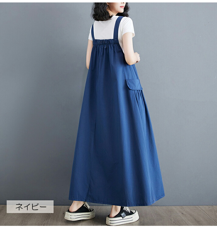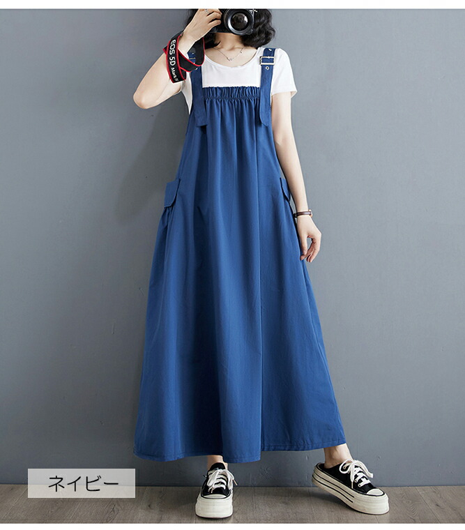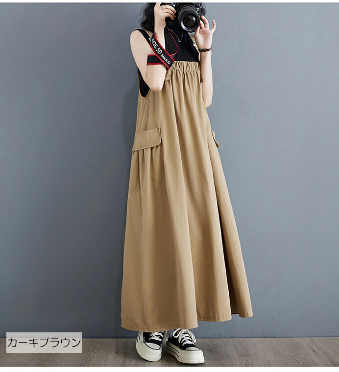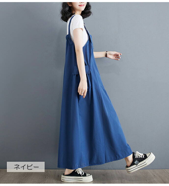 マタニティにも使える!4色展開 ワンピース ロング丈 ジャンパースカート フレア デニム サロペットワンピース ロングワンピース マキシ丈 オールインワン レディース ノースリーブ フレアスカート