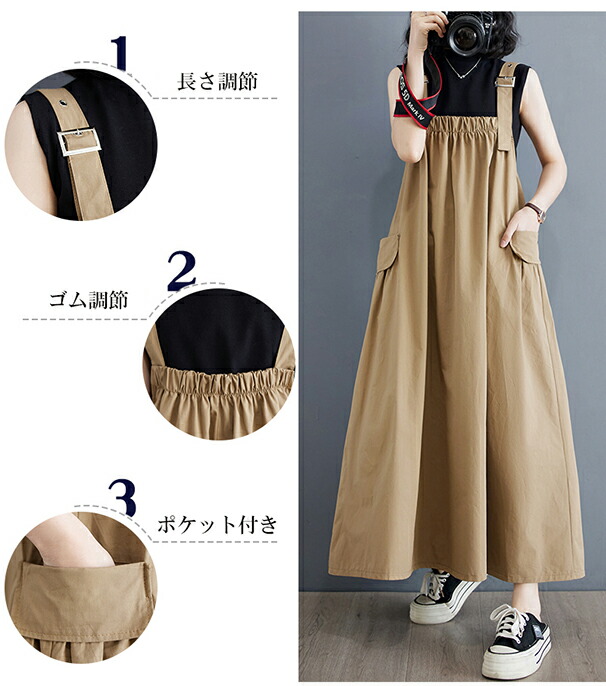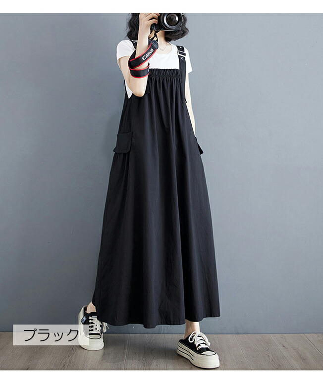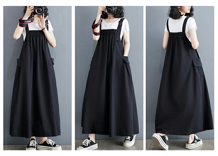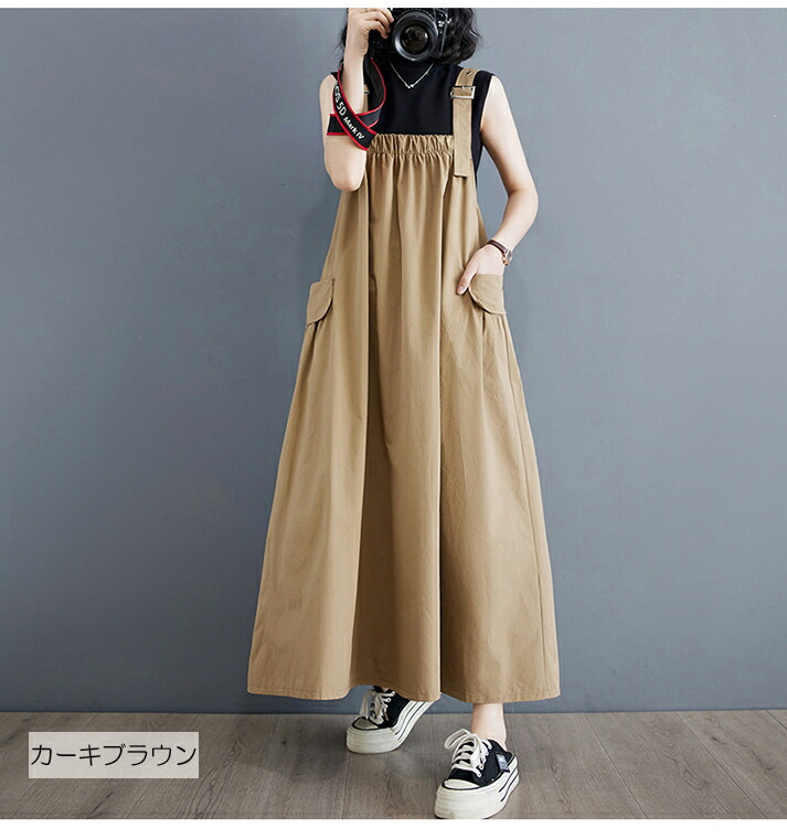 楽な着心地で体型カバーも叶うサロペットワンピースです。