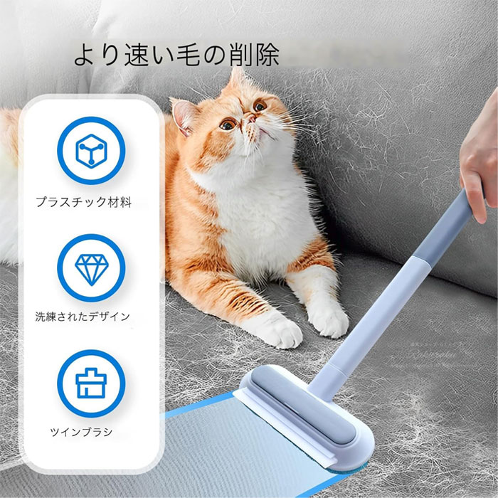 ・快適な使い心地のための長いハンドル:滑り止め加工が施された長いハンドルを備えたこの猫用ブラシは、床、カーペット、狭い場所でもかがむことなく掃除できます。人間工学に基づいたグリップは快適な使い心地を提供し、家庭や車内での長時間使用にも最適です。