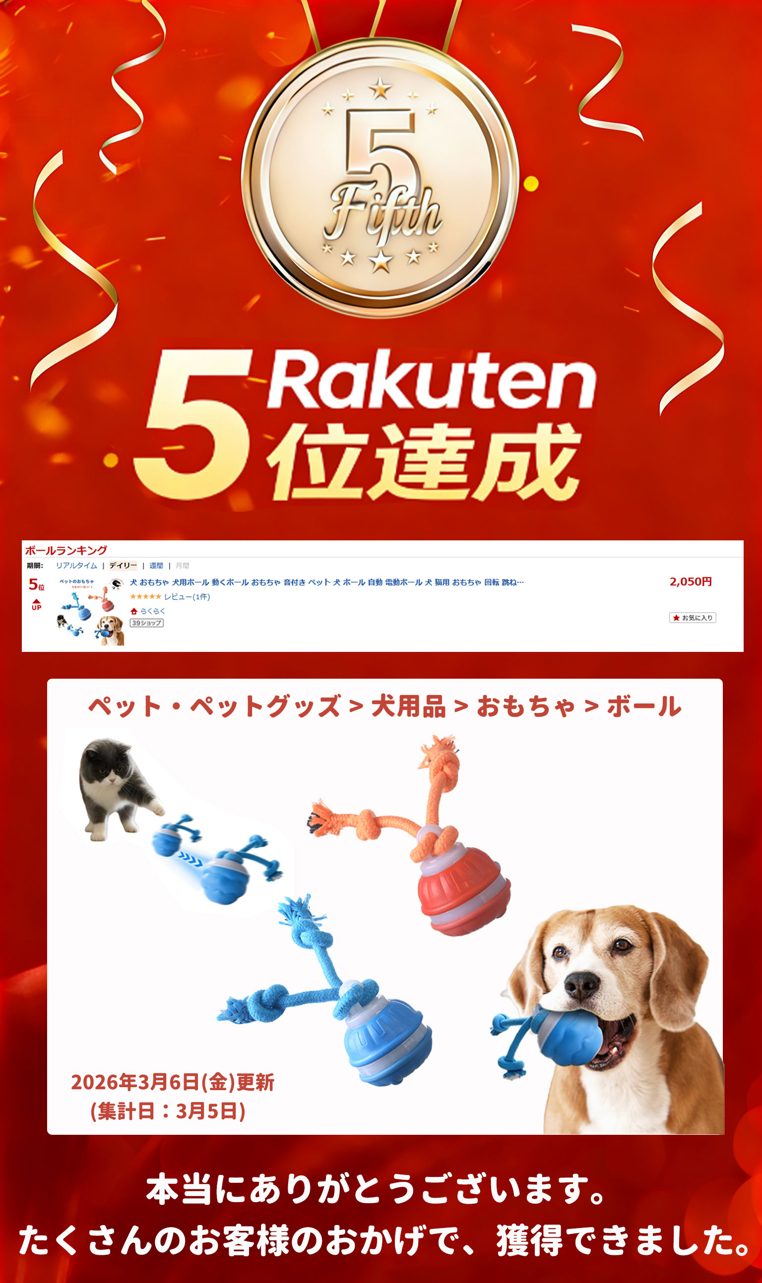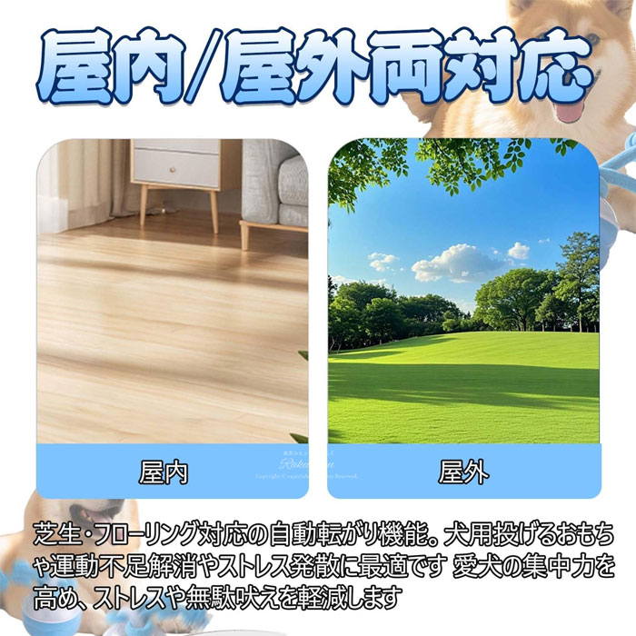 【屋内/屋外両対応】芝生・フローリング対応の自動転がり機能。犬用投げるおもちゃ運動不足解消やストレス発散に最適です。愛犬の集中力を高め、ストレスや無駄吠えを軽減します。