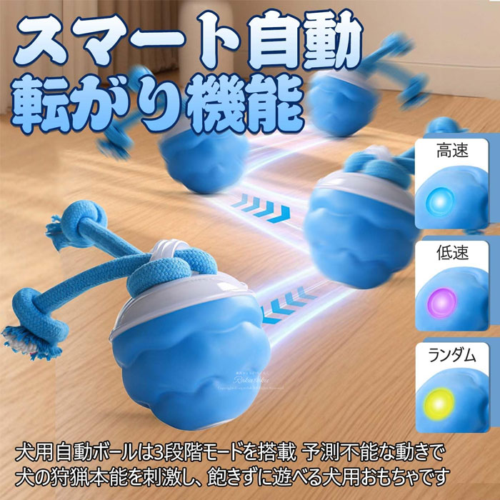 【スマート自動転がり機能】犬用自動ボールは3段階モード(高速/低速/ランダム)を搭載。予測不能な動きで犬の狩猟本能を刺激し、飽きずに遊べる犬用おもちゃです。