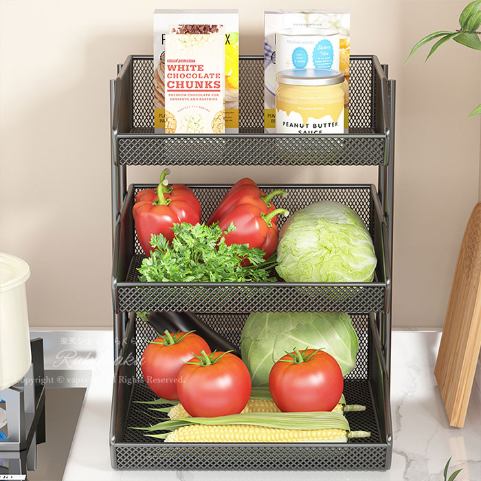 キッチン収納ラッ ク調味料ラック 卓上収納ラック 3段大容量 キッチン収納 3段 多機能食品棚 頑丈 省スペース 隙間収納 小物収納 野菜 皿 収納 調味料