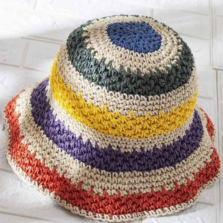 カラフルな甘い色使いの夏用帽子。