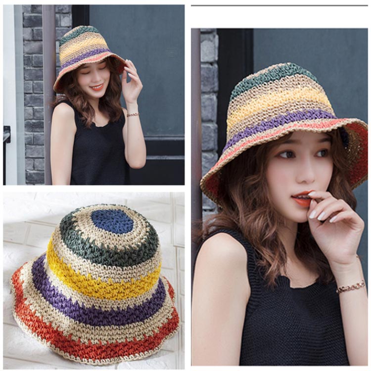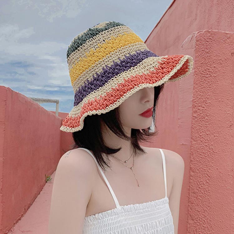 小顔 つば広 日除け帽子 ハット 麦わら 麦わら帽子 UVカット 虹柄 レディース レインボー 帽子 夏用 日よけ 日焼け防止 旅行 リゾート 紫外線対策