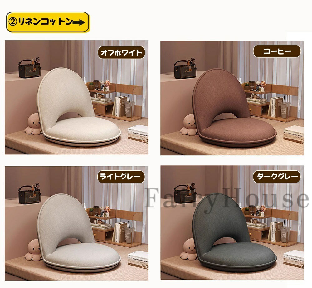 座椅子 リクライニング リラックスチェ (1)オフホワイト (1)オレンジ (1)グリーン (1)ダークグレー (2)オフホワイト (2)コーヒー (2)ライトグレー (2)ダークグレー (3)オフホワイト (3)ピンク (3)イエロー (3)グレー