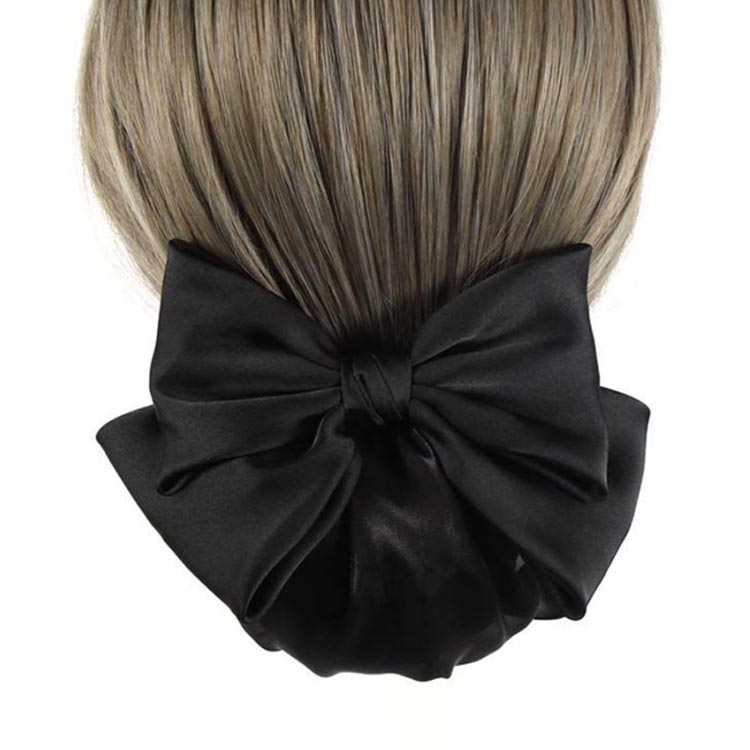 【髪留め】シンプルの中にリボン飾りがおしゃれ。ちょうどいい大きさで、つけても大げさにならず、上品におさまってくれます。余分な装飾がないのでオフィスやお仕事、冠婚葬祭でも活躍します。