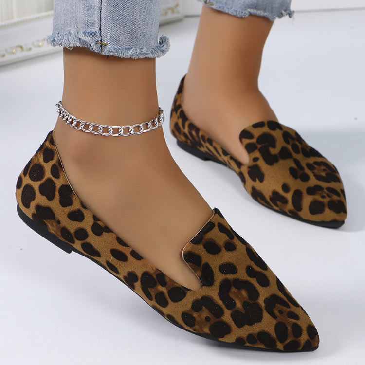 レオパード柄 フラットシューズ レディース ポインテッドトゥ カジュアルシューズ 浅めのカット ぺたんこ スリッポン 大きサイズ 歩きやすい 軽量 春靴