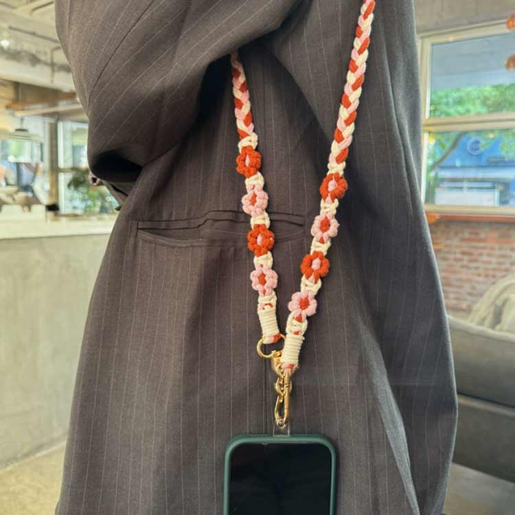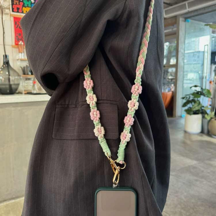 スマホショルダー ショルダーストラップ 編み込み 花 フラワー編み 可愛い ロングストラップ スマホストラップ 携帯ストラップ ネックストラップ 斜め掛け 首掛け スマートフォンストラップ 推 肩掛け