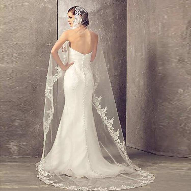 チャペルなど厳かで豪華な会場での挙式なら、ドラマティックなロングベールがぴったり。