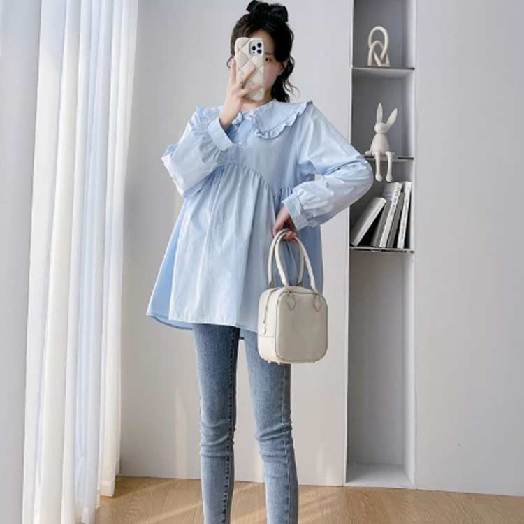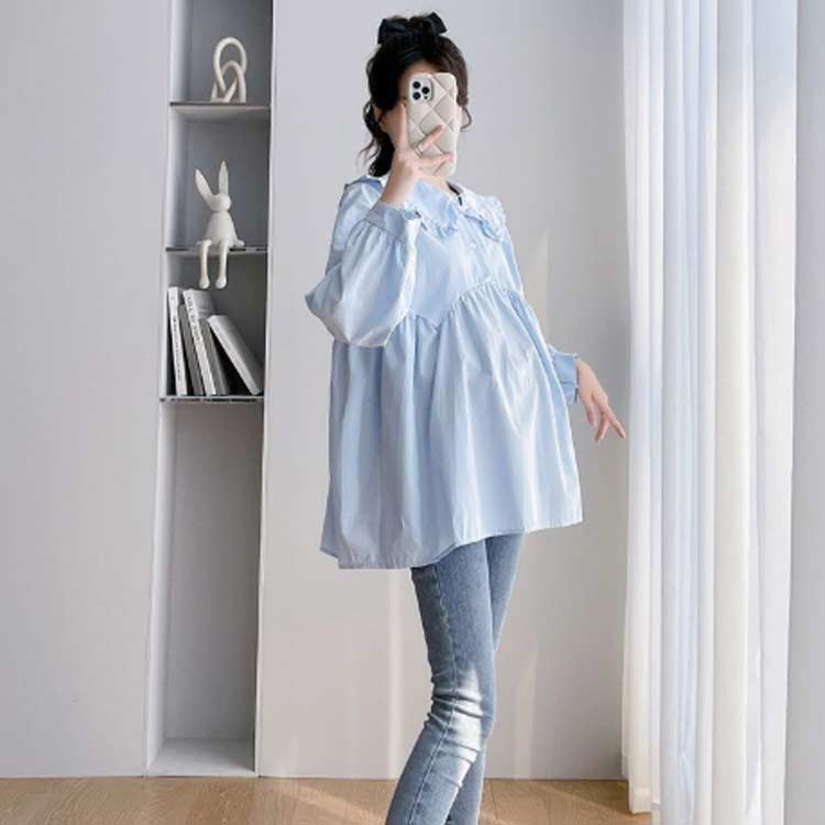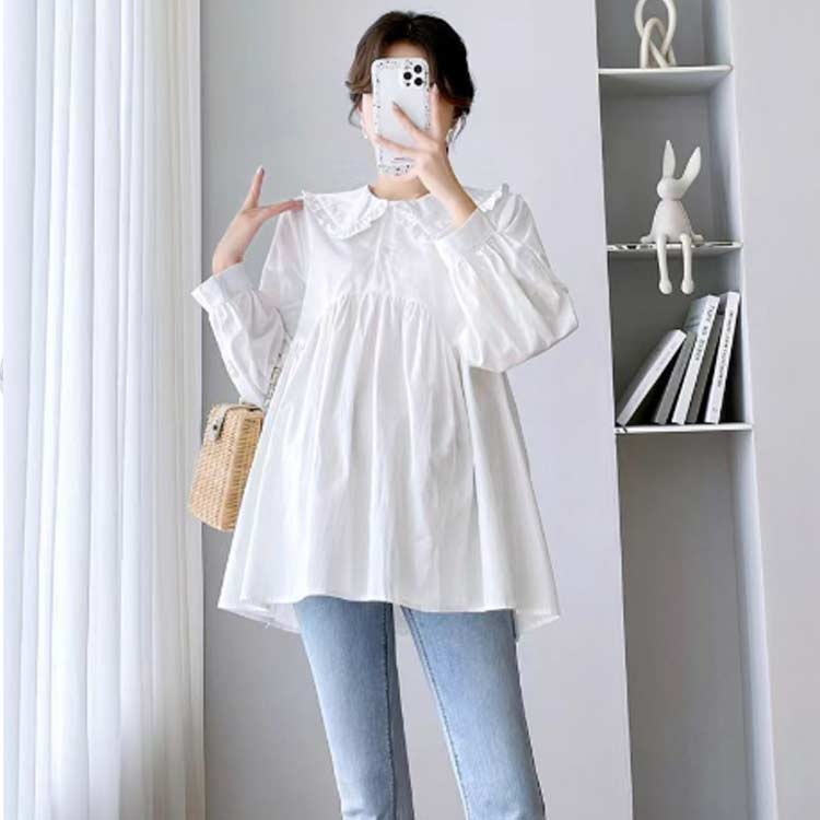 トップス プルーオーバー シャツ レディース マタニティ 産後 授乳服 産前 夏 長袖 秋 ブラウス ゆったり 春 シンプル 無地 上品 キレイめ カジュアル オフィ 体型カバー