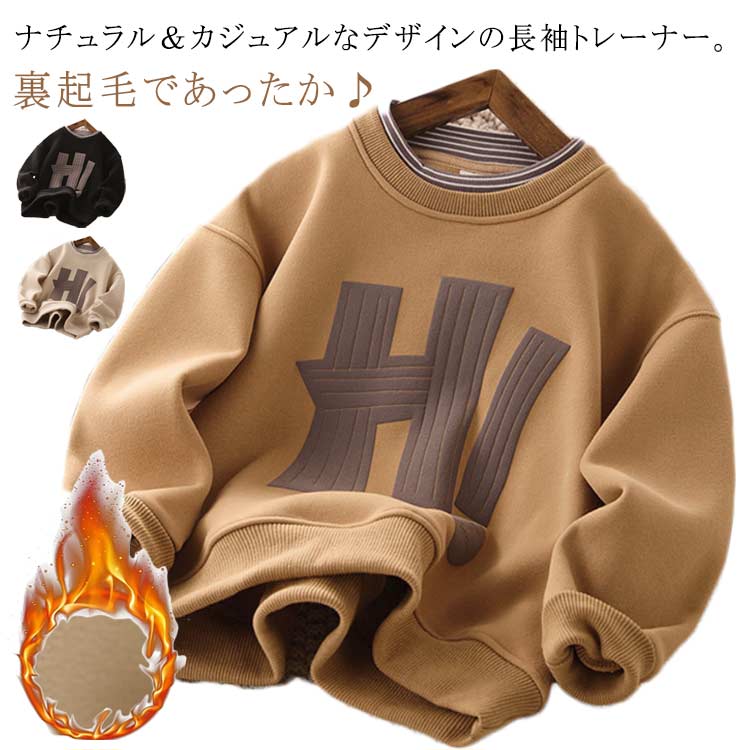 裏起毛であったか♪ ナチュラル&カジュアルなデザインの長袖トレーナー。