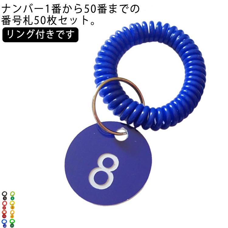 番号札 1-50番 プラスチック 番号タグ 50枚セット ナンバー札 カラーフダ リング付き クローク札 ロッカー 荷物札 ドア番号札 預かり札 預かり番号札 手順札 宿泊 スポーツ 施設 業務 入浴