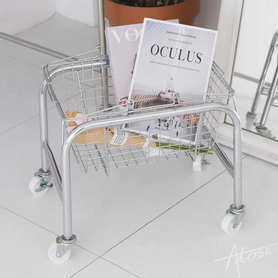 キャスターワゴン ハンドル付きカラーバスケット ランドリー 洗濯かご トイレ 洗面所 ランドリー収納 バスルーム スチール 籐 ナチュラル 北欧 収納ラック 脱衣所 ワゴン おしゃれ おも シェルフ