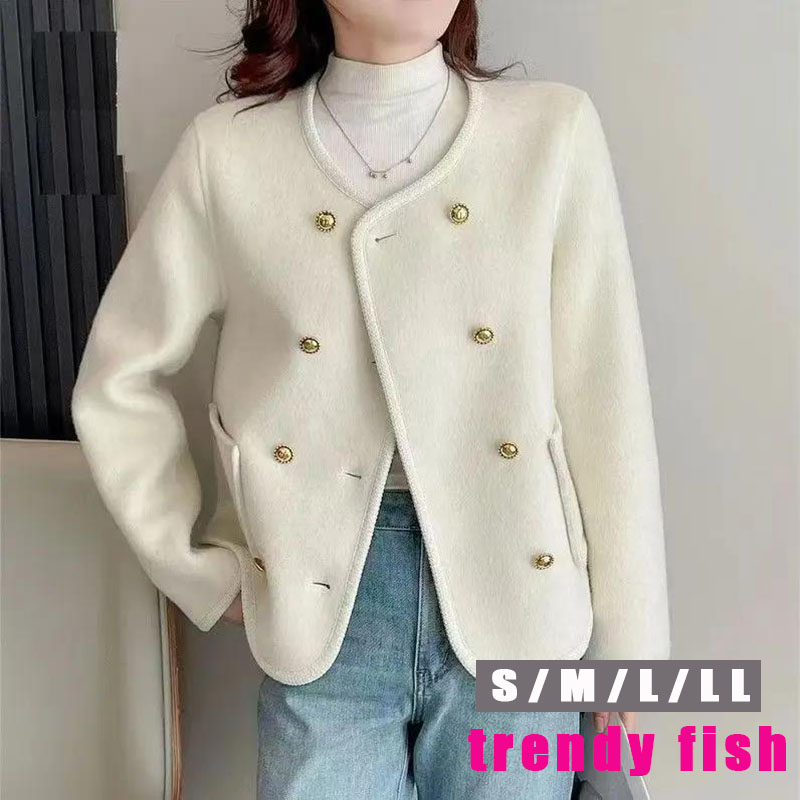 ダブルボタン ショートコート ノーカラー アウター レディース カジュアル