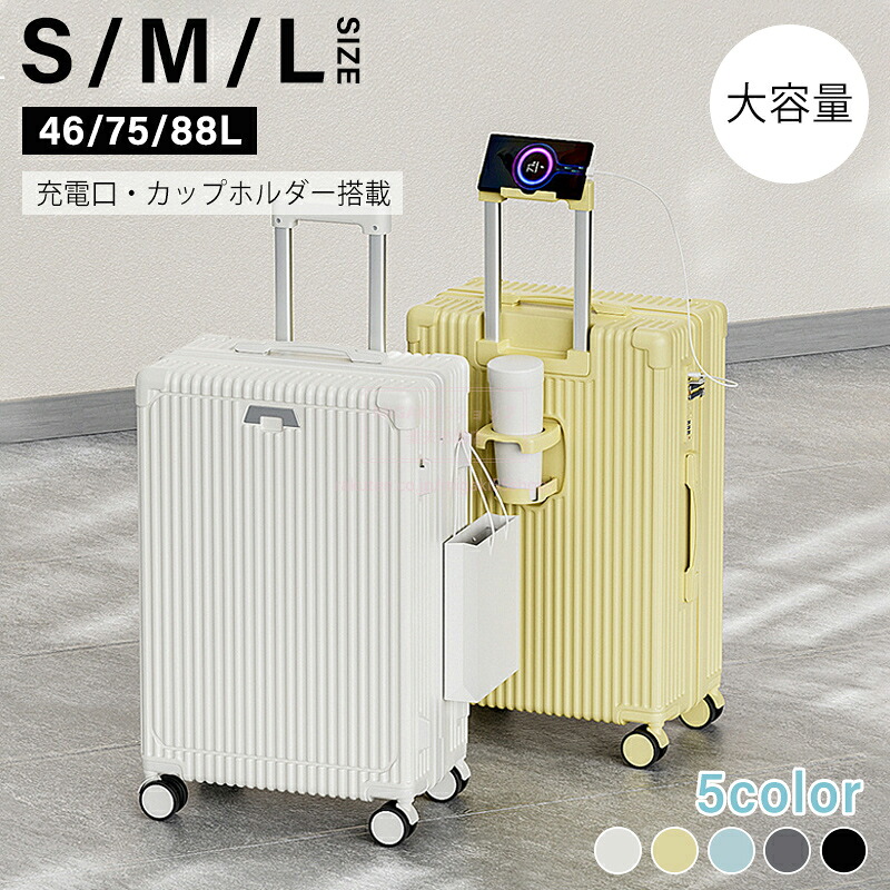 カップホルダー&スマホスタンド付きで待ち時間も快適 マルチスーツケース 耐衝撃 可愛い 海外出張 おしゃれ ダイヤル式 旅行 5泊6日 ファスナー トランクケース 機内持込可