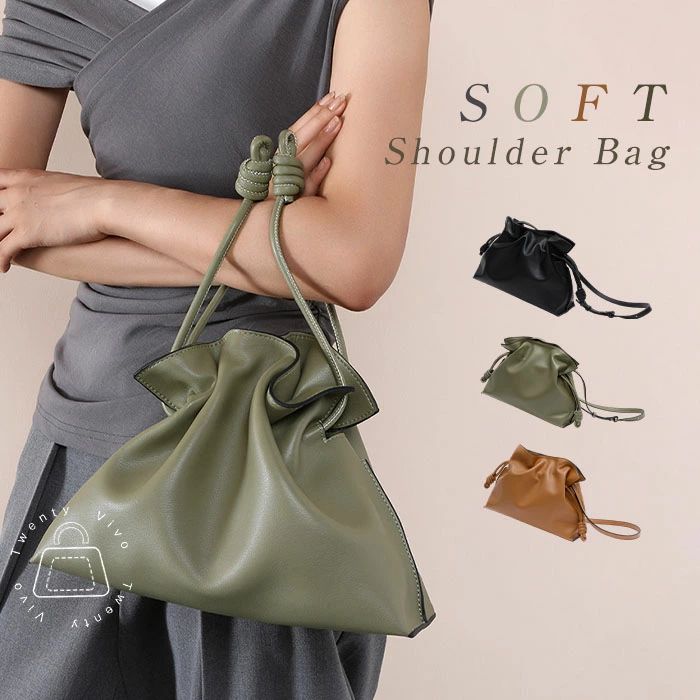 黒 ブラック おしゃれ きれいめ カジュアル 大人 柔らかい OL 通勤 ビジネス シンプル ドローストリング 肩掛け 手提げバッグ 小さめ 牛革 軽量 2wa ハンドバッグ