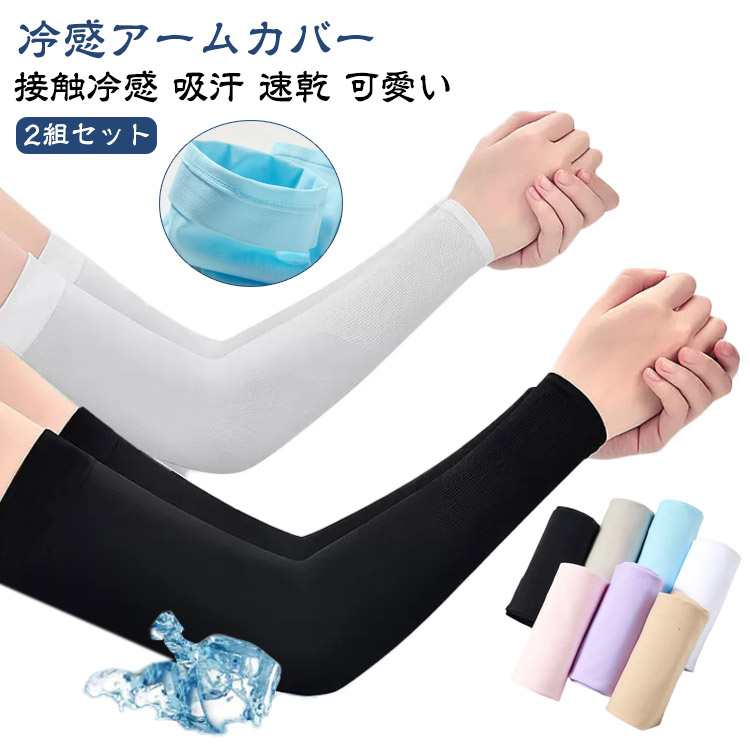 ひんやりアームカバー 冷えるアームカバー 袖カバー 腕カバー 2組 セット 涼しい クール 指穴なし 指穴 付き アーム カバー カット 紫外線 対策 ズレ落ち防止 フィット感
