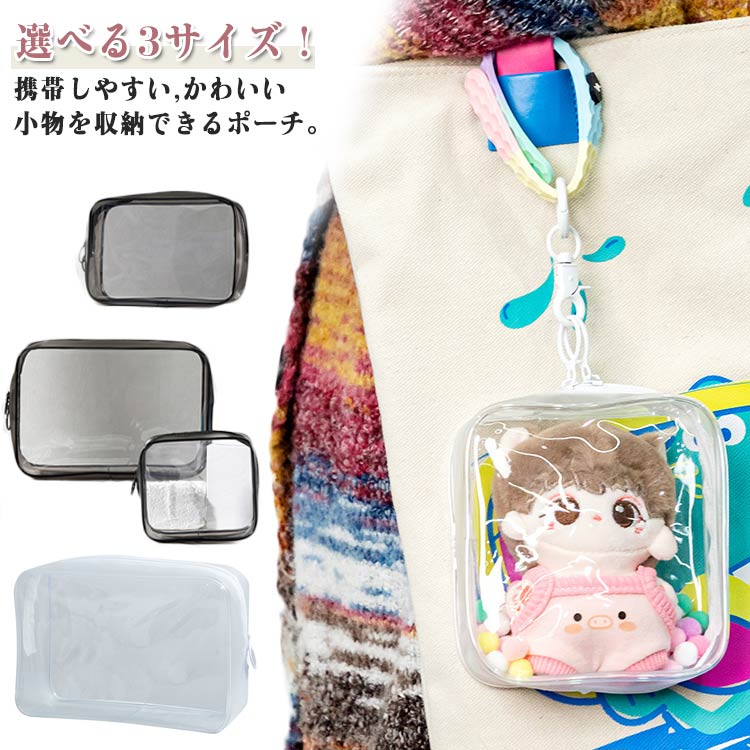 ぬいぐるみポーチ 2個セット キーホルダー クリア ポーチ ストラップ ぬいポーチ ぬいぐるみバッグ ビニールバッグ ぬいぐるみ ケース キャラ 推し活 推しぬい 推し色 グッズ オタ活