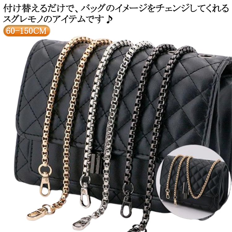 ショルダーストラップ チェーン ショルダーベルト チェーンストラップ 単品 付け替え用 交換用 細い ショルダーバッグ ストラップ 斜めかけ 肩掛け バッグ 色落ちしない 大人 シンプル 黒 おしゃれ
