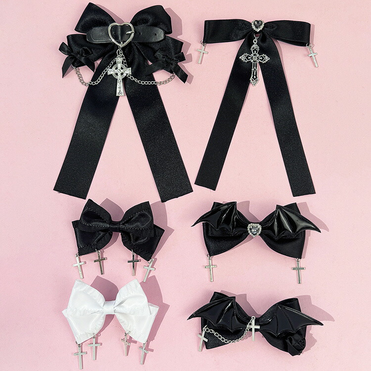 ヘア リボン ヘアリボン クリップ 髪飾り ブラック ホワイト ヘアアクセサリー 大きい ヘアクリップ サテン バレッタ ハロウィン ハート クロス ヘアピ コスプレ