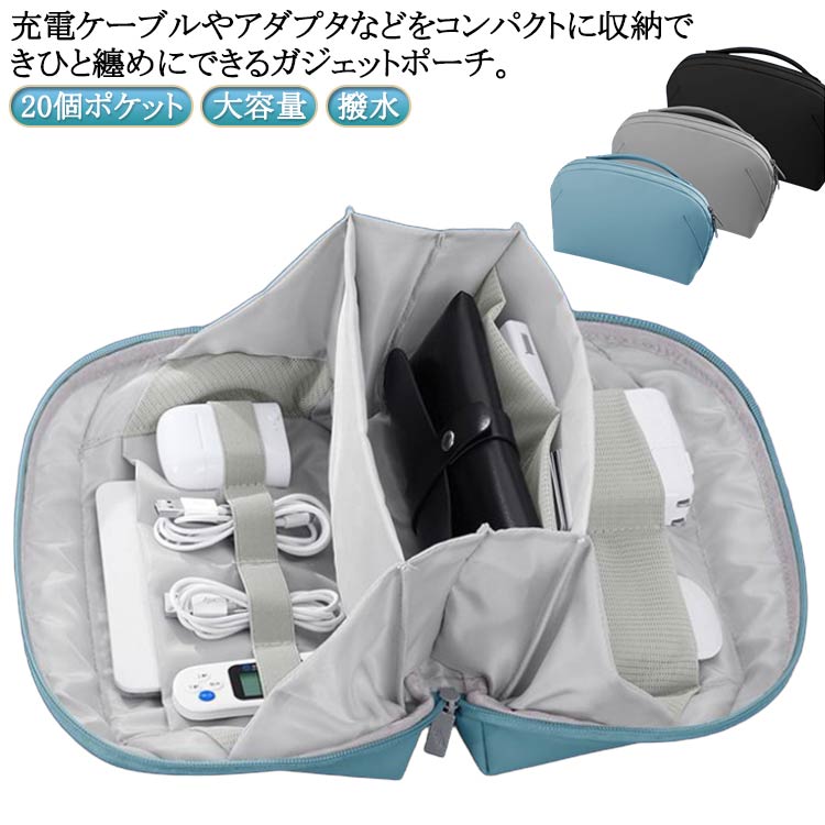 小物ポーチ 持ち手付き 持ち運び 撥水 充電器 ケーブル 収納 ガジェットポーチ ケース トラベルポーチ 大容量 収納ポーチ バッグインバッグ 化粧ポーチ 旅行ポーチ 小物入れ