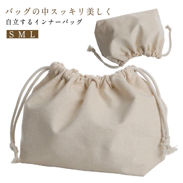 巾着袋タイプ 整理 トラベルポーチ かごバッグの内袋 キャンバス 収納バッグ 収納ポーチ 内布 バッグインバッグ 整理整頓 中身見えない 小物整理 型崩れ防止