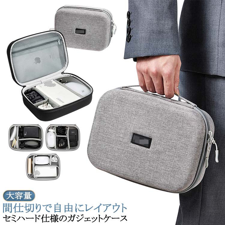 ガジェットポーチ ガジェットケース 大容量 仕切り付き ハードケース 収納 ケーブル収納 周辺機器収納 収納ポーチ 小物ポーチ 小物入れ トラベルポーチ