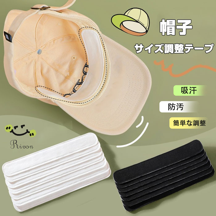 帽子 サイズ調整テープ ハットサイズ 黒 白 ハットサイズ調整テープ 剥がせる 粘着テープ 調整 テープ 吸汗 防汚カット可 ステッカー 汗止めバンド 帽子ケア用品 頭囲調整