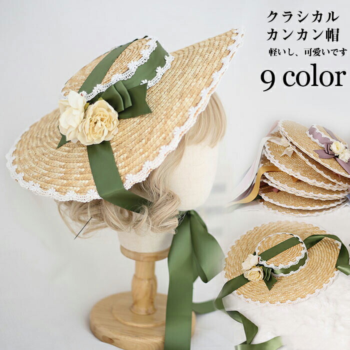 ロリータファッション ロリータ レディース ゴスロリ ゴシック クラロリ 甘ロリ ヘッドドレス カンカン帽 帽子 ハット 麦わら帽子 レース リボン 顎リボンつき 森ガール 可愛い