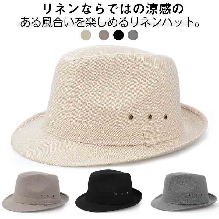 ハット 中折れ リネン帽子 紫外線 男性 中折れ 紳士帽子 リネ