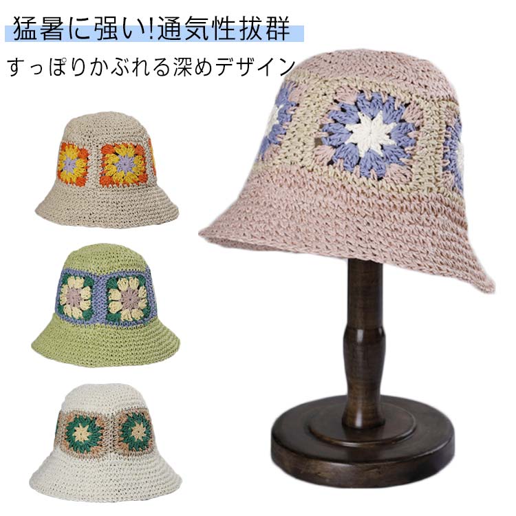 ハット レディース 折りたたみ 麦わら 収納一体型 ハット帽 バケットハット 帽子 バケット バケハ アウトドア 花柄 カット 深め