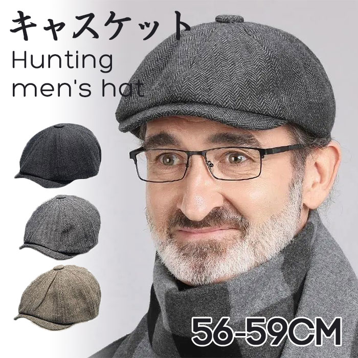 キャスケット メンズ 帽子 秋冬 シニア 男性 おじいちゃん ファッション 高齢者 40代 50代 60代 70代 80代 90代 ゴルフ ウール混紡 無地 シンプル メンズ帽子
