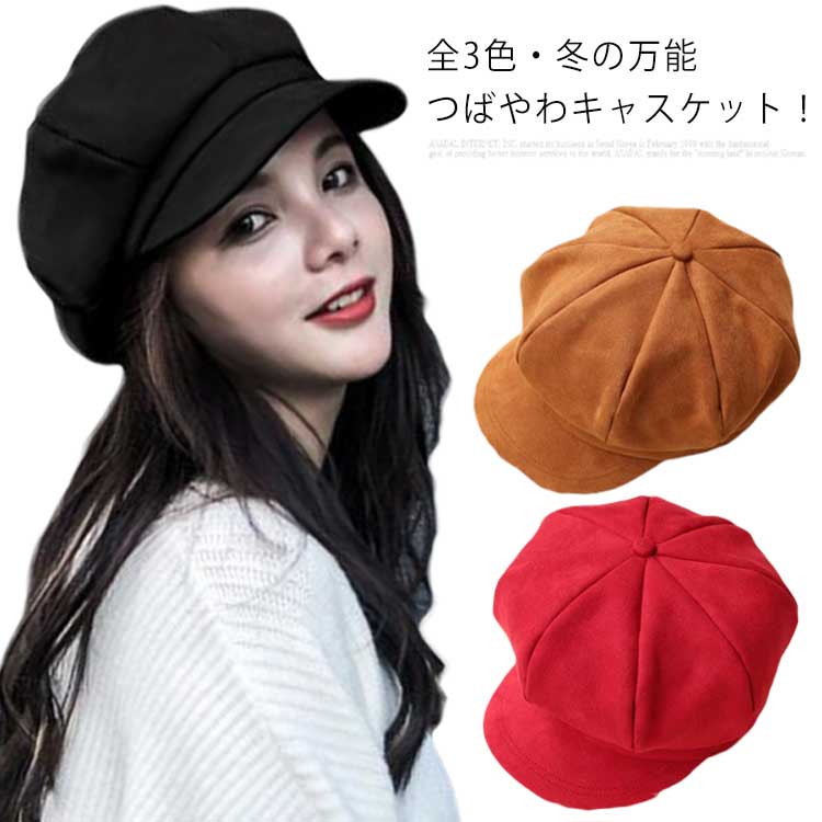 キャスケット 帽子 スエード調 合皮 スエード帽子 レディース ボリューム フェイクレザー つば お洒落 カジュアル ファッション小物 小顔効果