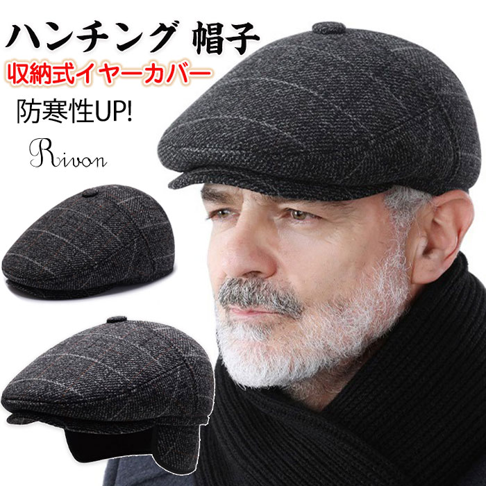 メンズ 帽子 耳あて付き 秋冬 ハンチング シニア 男性 おじいちゃん 高齢者 お年寄り キャスケット キャップ 防寒帽子 あったか帽子 厚手 防風 防寒 40代 50代 60代 暖かい