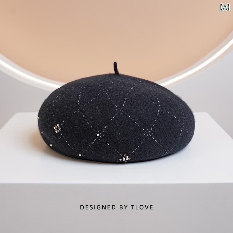 ベレー帽 レディース 秋冬 黒 茶 グレー ビーズ キラキラ ウール フェルト 暖かい 柔らかい ストレッチ性 普段使い ショッピング 旅行 おしゃれ デート