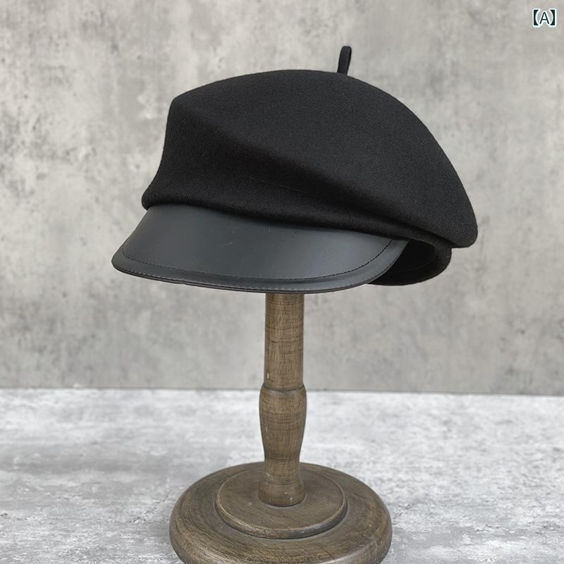 キャスケット ベレー帽 レディース 帽子 おしゃれ かわいい レトロ ウール ハット 秋冬 さわやか 革 つば ブラック ホワイト カーキ 乗馬