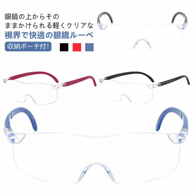 2本セット メガネの上からかけられる拡大ルーペ 拡大ルーペ 携帯 メガネの上から ルーペ 眼鏡 めがね 3倍 5倍 8倍 10倍 12倍 16倍 ブルーライトカット 読書用 おしゃれ メガネ型ルーぺ