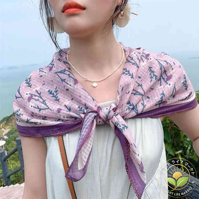 春夏 秋 きれいめ 綿麻 日焼け対策 紫外線対策 ストール ネックスカーフ バッグスカーフ 柄 大判スカーフ 正方形 大判