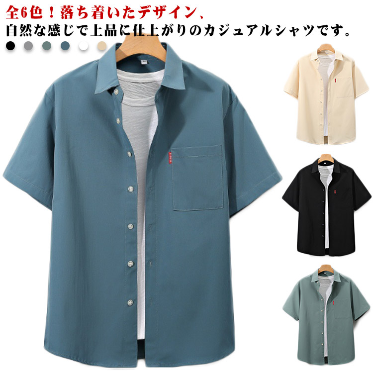 メンズ 開襟シャツ 通勤 カジュアルシャツ 襟付き トップス 胸ポケット 半袖 シャツ 無地シャツ 夏 夏服 シンプル 父の日 半袖シャツ 大きいサイズ お兄系 ゆったり プレゼント 薄手