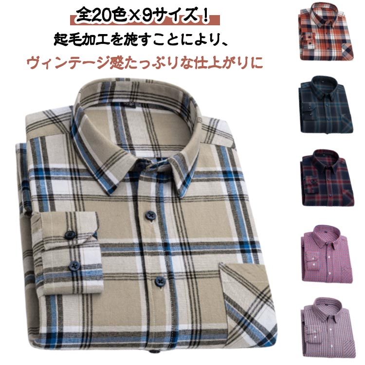チェックシャツ チェックネルシャツ メンズ ネルシャツ コットンネルチェックシャツ カジュアル シャツ ブラウス 春物 秋物 送料無料