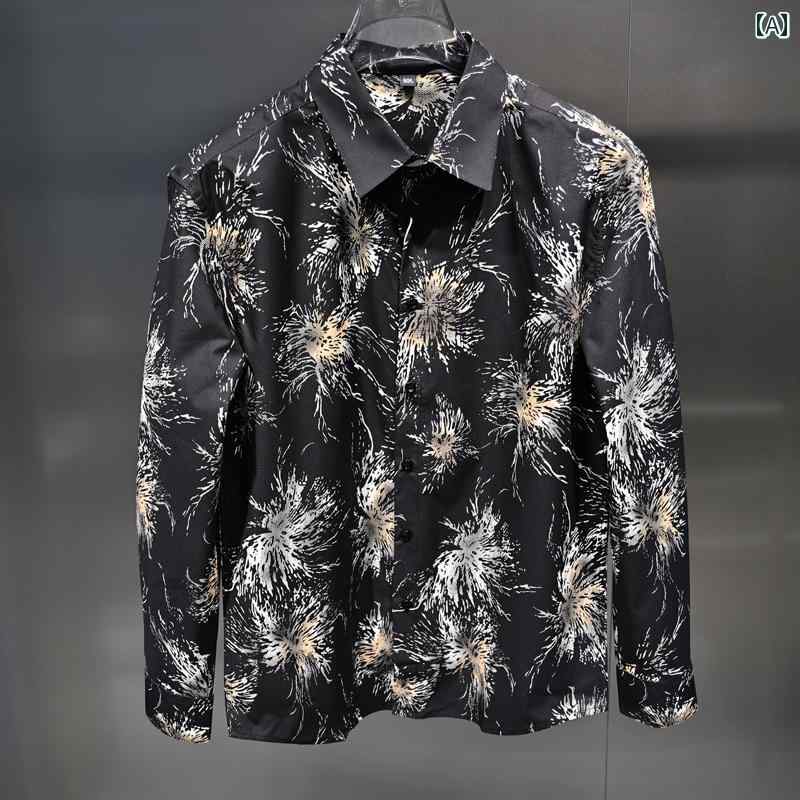 カジュアルシャツ トップス メンズ 秋 カラフル 花火 プリント ワイド ユニーク ストレッチ シャツ 個性 都会的 長袖