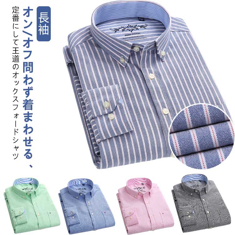 ストレッチ メンズ 通勤 長袖 形態安定 オックスフォードシャツ シャツ ストライプ柄 ワイシャツ 襟付き きれいめ カジュアルシャツ オフィスカジュアル ボタンダウ おしゃれ