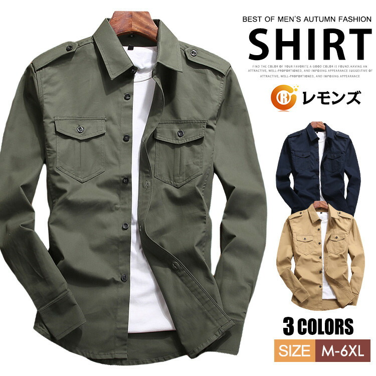 ミリタリーシャツ メンズ 長袖シャツ カジュアルシャツ 無地 アメカジ コットンシャツ シャツジャケッ トップス カジュアル ミリタリー シャツ ポケット付き 通学 オリーブ メンズファ ワークシャツ