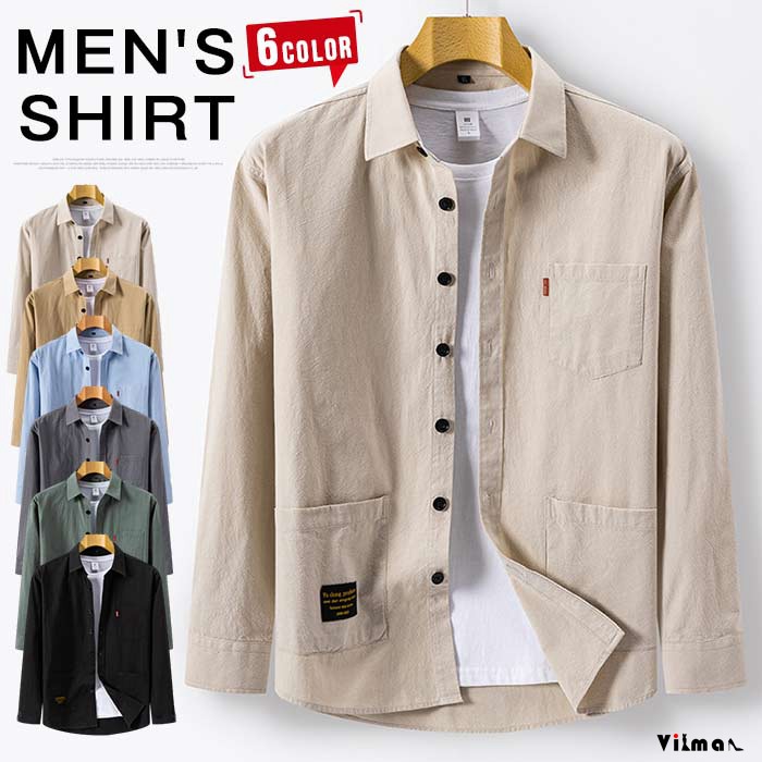 長袖シャツ カジュアルシャツ 無地 アメカジ コットンシャツ シャツジャケッ