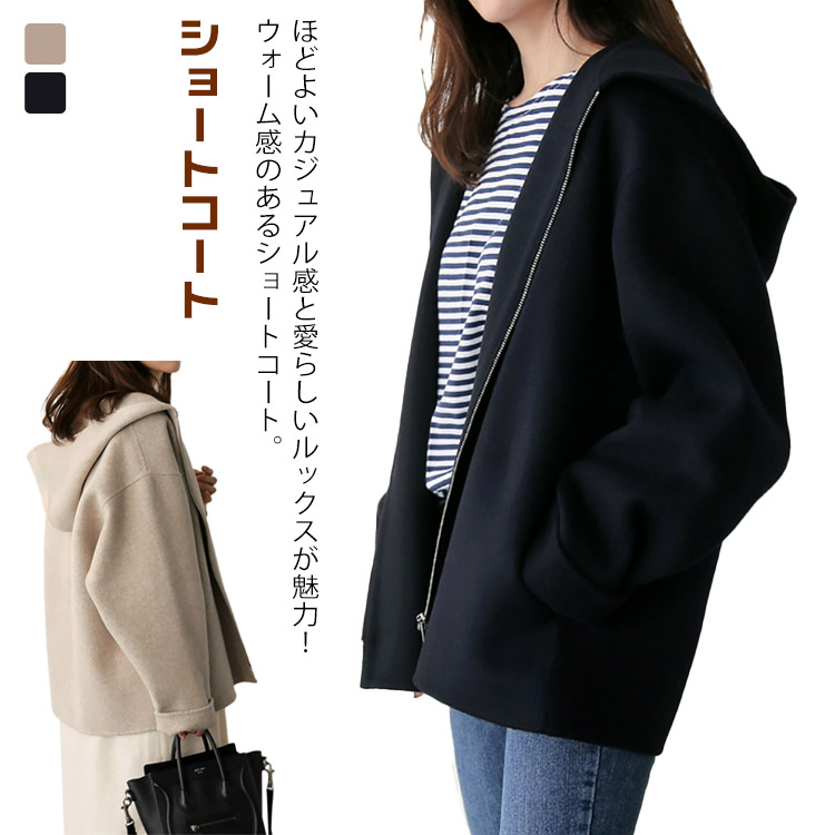 ショートコート コート レディース ショート フード ジャケット トップス アウター ウール調 あったか 秋冬